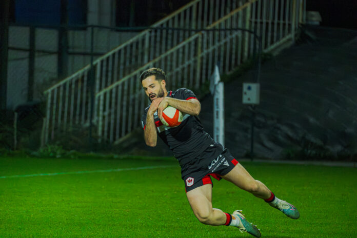 Jules Gimbert inscrit le sixième essai niçois et scelle le bonus offensif du Nissa Rugby / Ⓒ Luke Nicolas